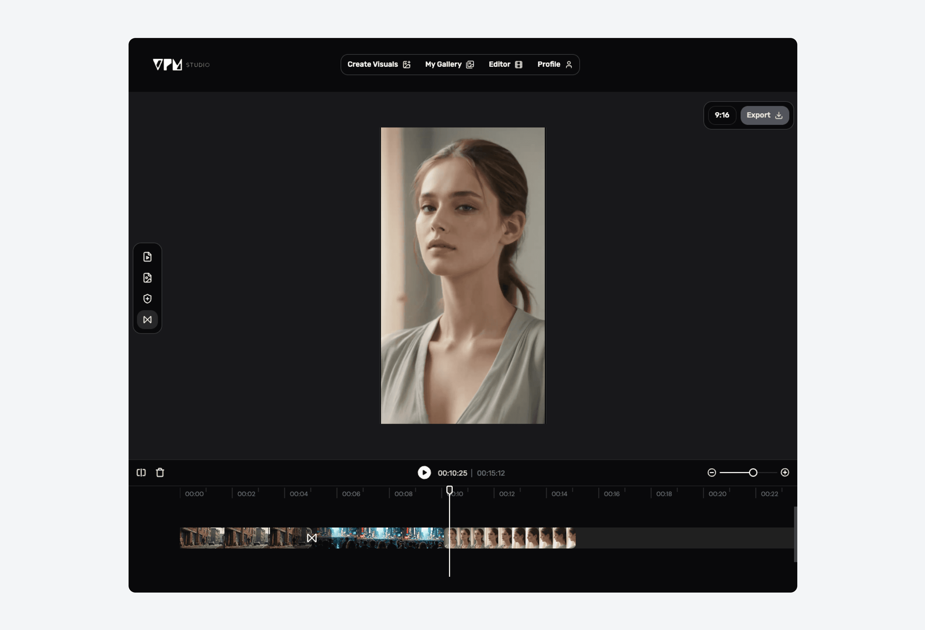 To make the most of the assets created on VPM Studio, we developed an intuitive, browser-based video editor. This built-in tool allows users to seamlessly stitch together their generated content into immersive final edits, without ever needing to leave the platform. Later video can be used for Instagram stories, immersive projector visuals during live DJ set or anything else.